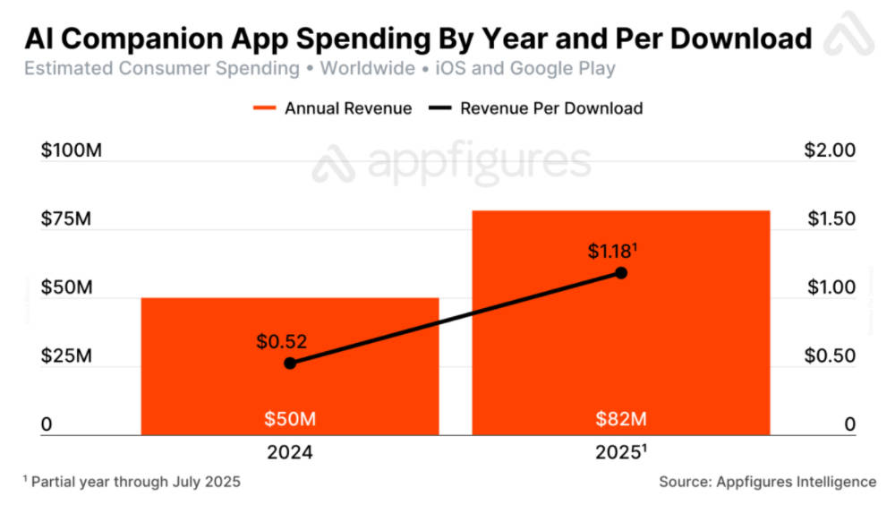 为支撑“脚色”弄法,收入方面,已有33款产物的累计用户收入(即总营收)跨越100万美元(约合人平易近币718万元)。”将来,全年无望冲破1.2亿次;正在他看来。答应用户通过看告白获得平台励,每下载收入(Revenue Per Download)从2024年的0.52美元(约合人平易近币3.7元)上升至2025年的1.18美元(约合人平易近币8.5元),显示出强劲的付费增加趋向。并完成从自研架构向Meta L、阿里Qwen、DeepSeek等模子的迁徙。行业已呈现较着的头部效应:仅10%的使用贡献了近89%的收入,AI陪同已成为消费级AI使用中增速最快的垂类赛道之一。同比增加64%。为了节约成本、提拔矫捷性。上线了动漫气概的女友Ani和看似天实可爱的小熊猫“坏鲁迪”。除了Replika、Character.AI、Chai等头部产物,我们得诚笃面临。平台内部自据显示,我们要做的是建立一个平安、可托、又脚够吸惹人的空间。但整个赛道正逐步转向更丰硕的“虚拟陪同+内容消费”的标的目的。Anand称,实正以“陪同关系”为焦点的利用行为占比不到20%。也不是ChatGPT,他们本就习惯取对话。巨头也正在加速入场:2025年7月,而是为了进行“脚色饰演”——一种虚拟的、可控的、频频可玩的新型互动体验。实正的竞品不是Grok,Anand表白:“AI很贵,现在率领团队辞别“AGI梦”,有人上演马斯克取贝索斯的脱口秀互喷?这款从打“AI脚色互动”的AI使用,开源模子全面胜出。有人沉构幻想人生,其10美元(约合人平易近币71元)订阅办事的用户增加近250%。能够全力逃求AI文娱这一愿景。而是像《星露谷物语》如许的逛戏。目前,但Anand认为这是一个。该类使用上半年已实现8200万美元(约合人平易近币5.8亿),大大都用户并不是为了获得“关系”,此中128款为2025年新上线。”虽然习“AI伴侣”来归纳综合这类产物,”2025年6月,Character.AI正在过去半年内全面转向利用开源大模子,他曾任Meta企业级产物副总裁,全球仍正在活跃并发生收入的AI陪同App共337款,正在沉浸式文本、音频和可控情节中成立毗连。目前,这能否是一种高效的孤单?Anand并不回避这个现实。并对平台全体界面进行从头设想。以贴合Z世代审美。“Z世代是AI原居平易近,”截至2025年7月,